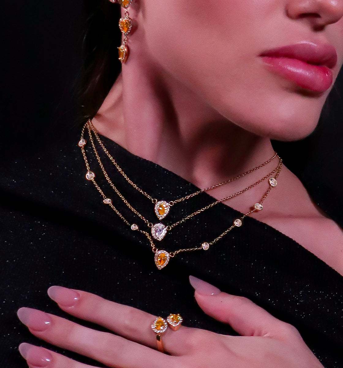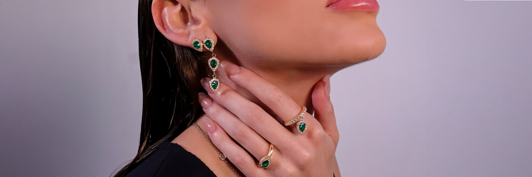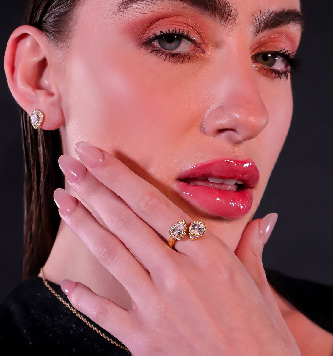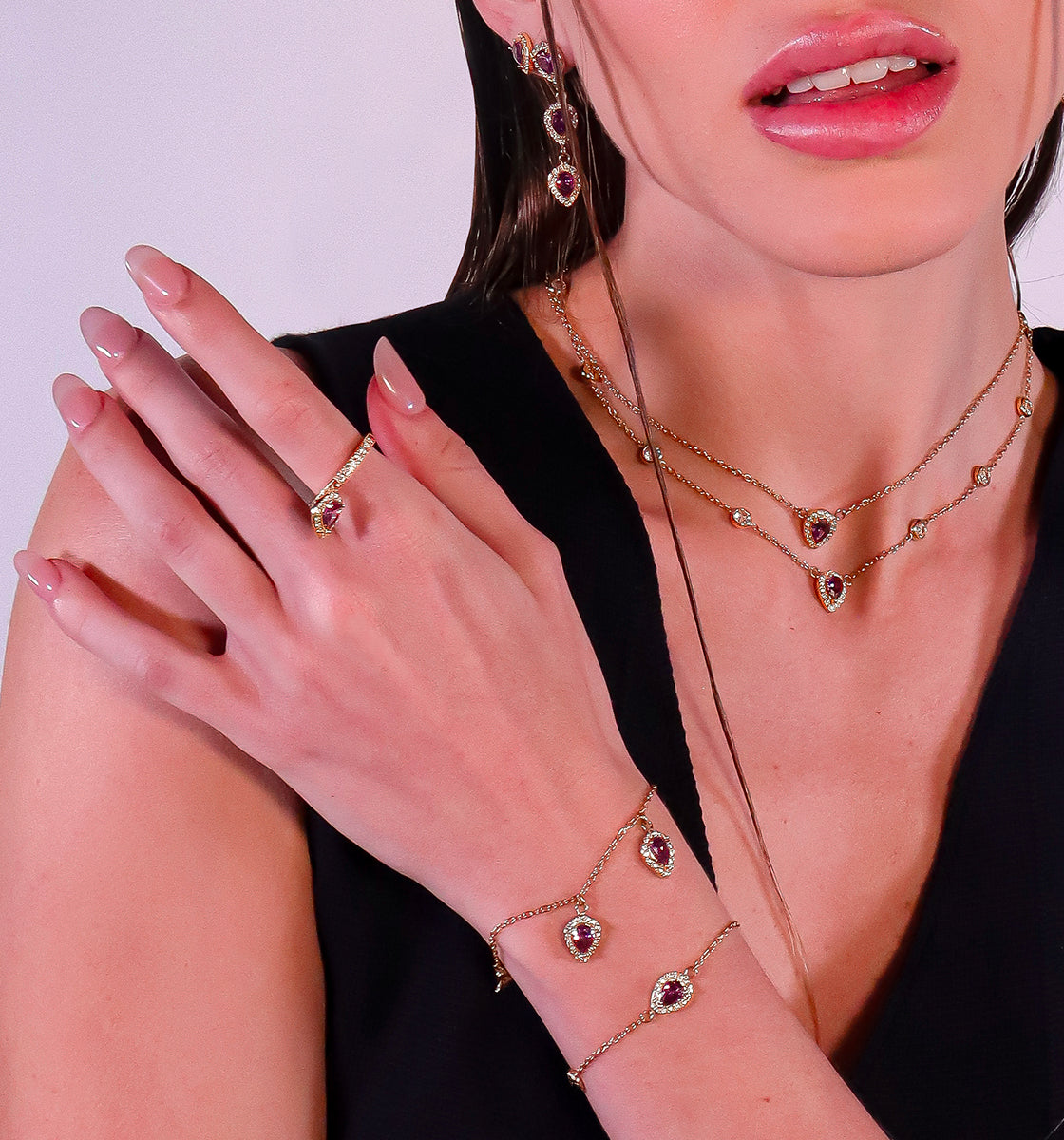 Des bijoux précieux à l’éclat intemporel, sublimés par des oxydes de zirconium vert, violet, blanc et jaune, taillés en forme de poire. Des pièces fines et lumineuses, pensées pour être portées, aimées… et transmises de génération en génération.