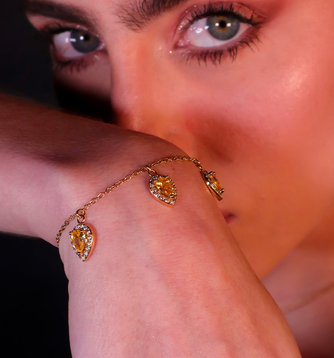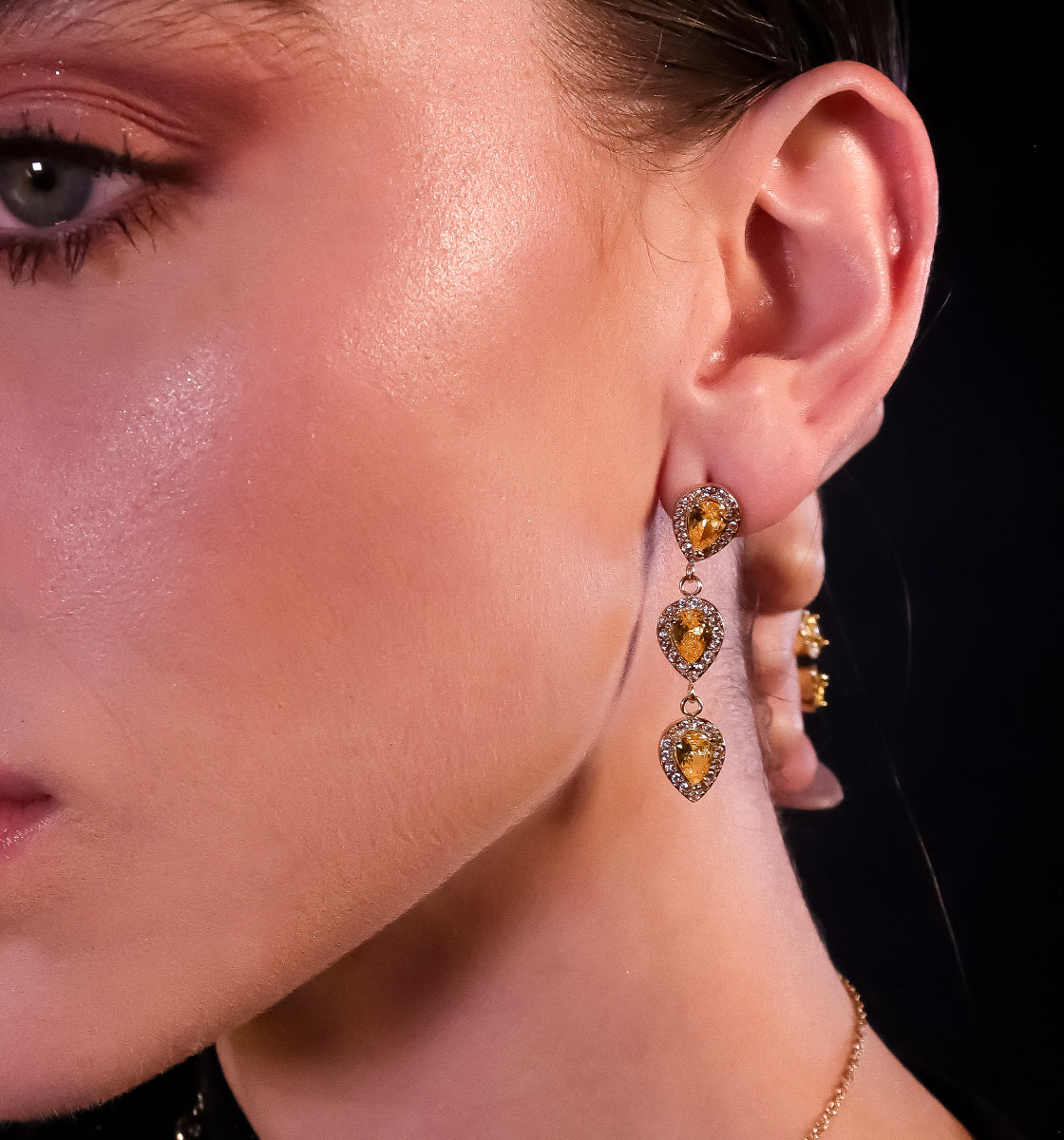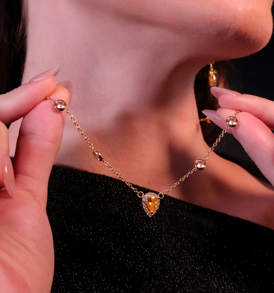 Des bijoux précieux à l’éclat intemporel, sublimés par des oxydes de zirconium vert, violet, blanc et jaune, taillés en forme de poire. Des pièces fines et lumineuses, pensées pour être portées, aimées… et transmises de génération en génération.